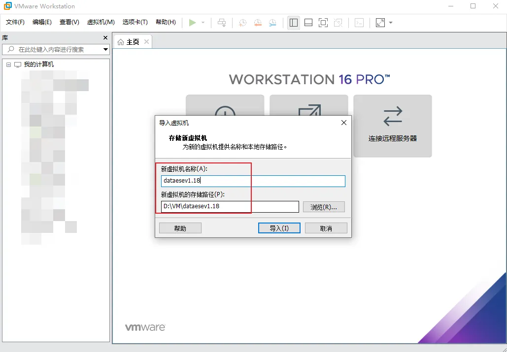 自定义虚拟机的名称和虚拟机保存位置,点击“导入”;
