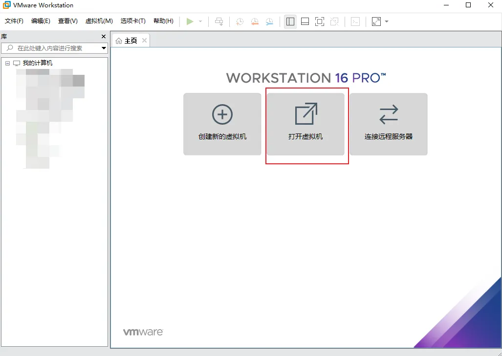 打开 VMware Workstation 虚拟机软件,点击“打开虚拟机”;